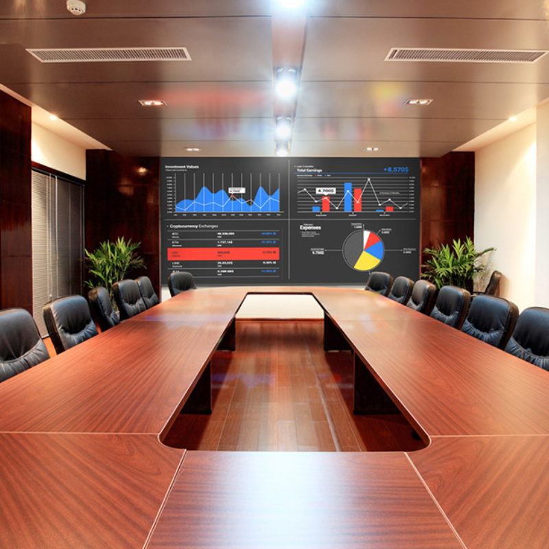 - Tính linh động cao: Kích thước màn hình LED trong phòng họp có thể linh động tùy theo diện tích phòng, lắp đặt cố định hoặc di chuyển theo nhu cầu của doanh nghiệp.